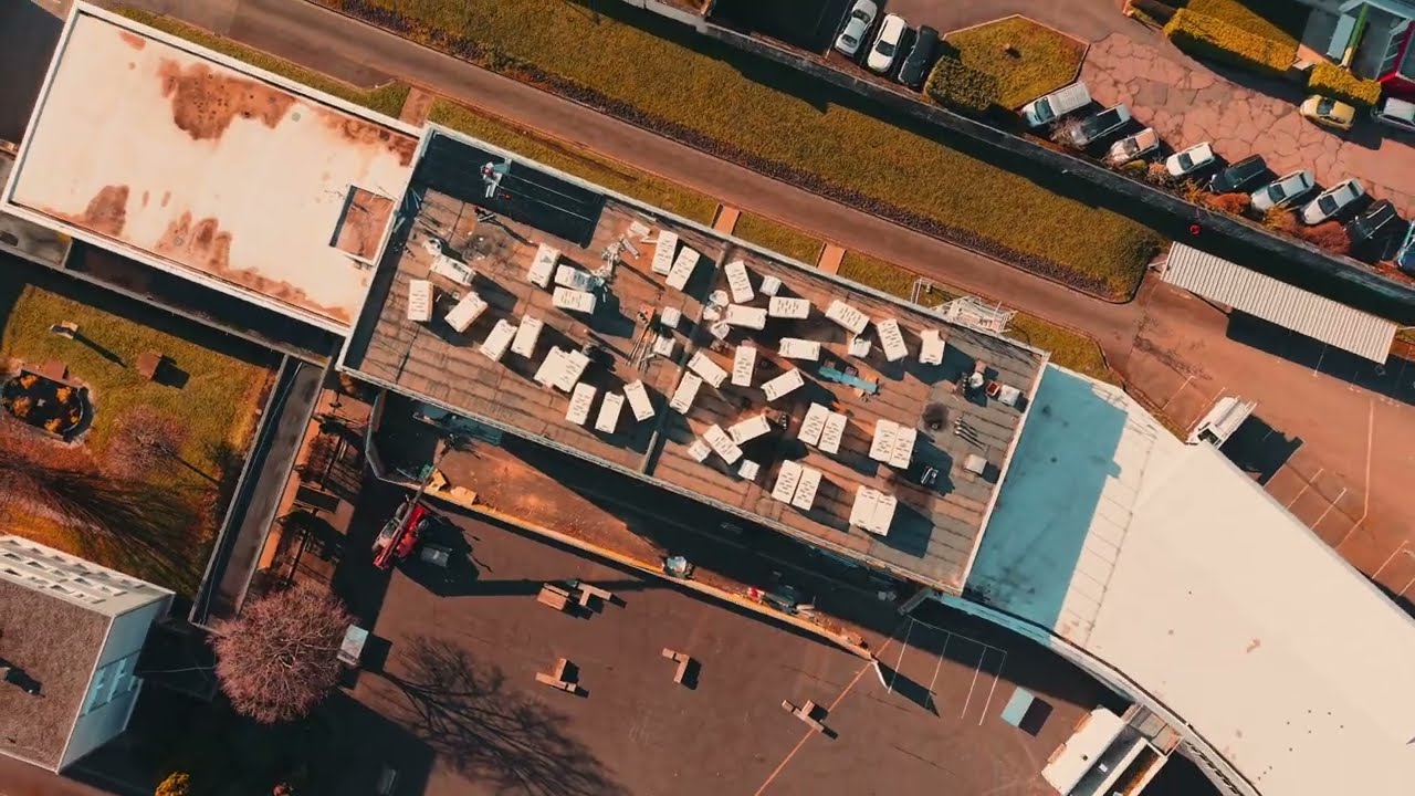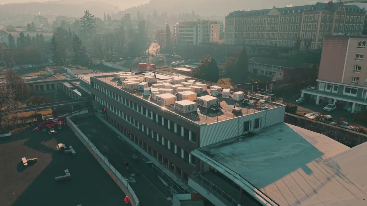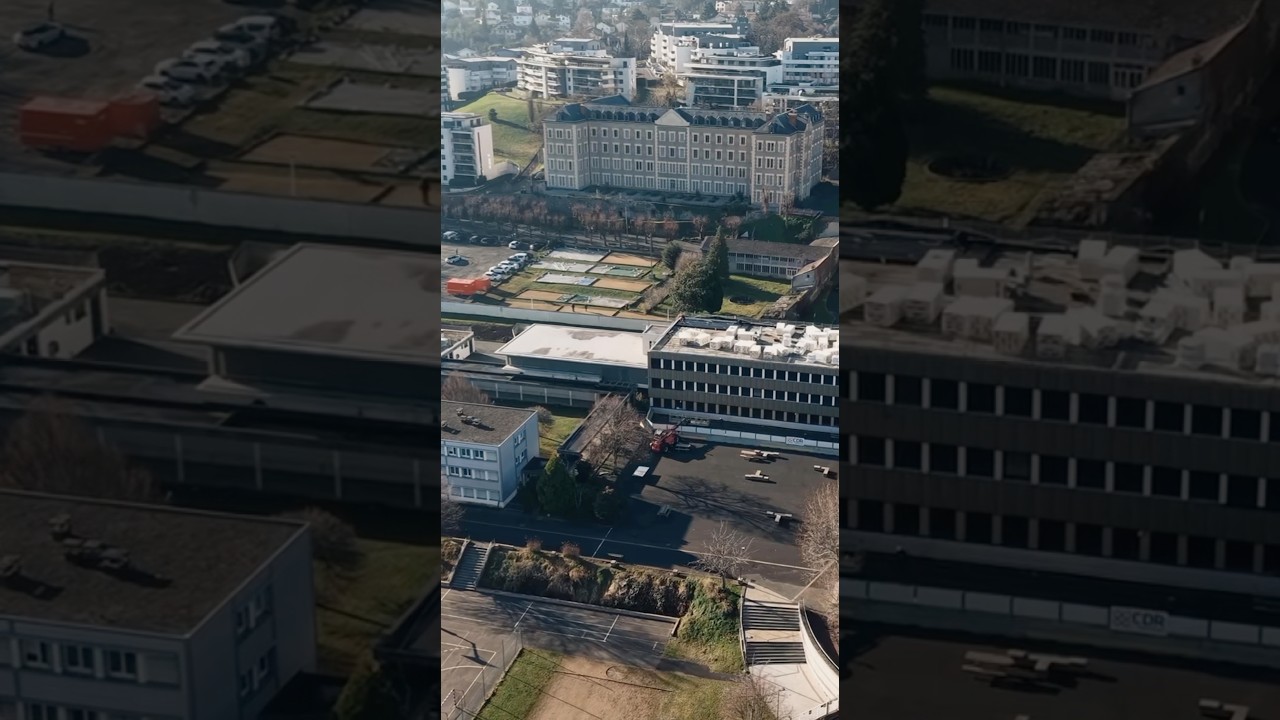 Une prise de vue aérienne dynamique met en lumière le processus de rénovation de la façade de l’école à Clermont-Ferrand. Le résultat promet d’être spectaculaire, esthétique et captivant.